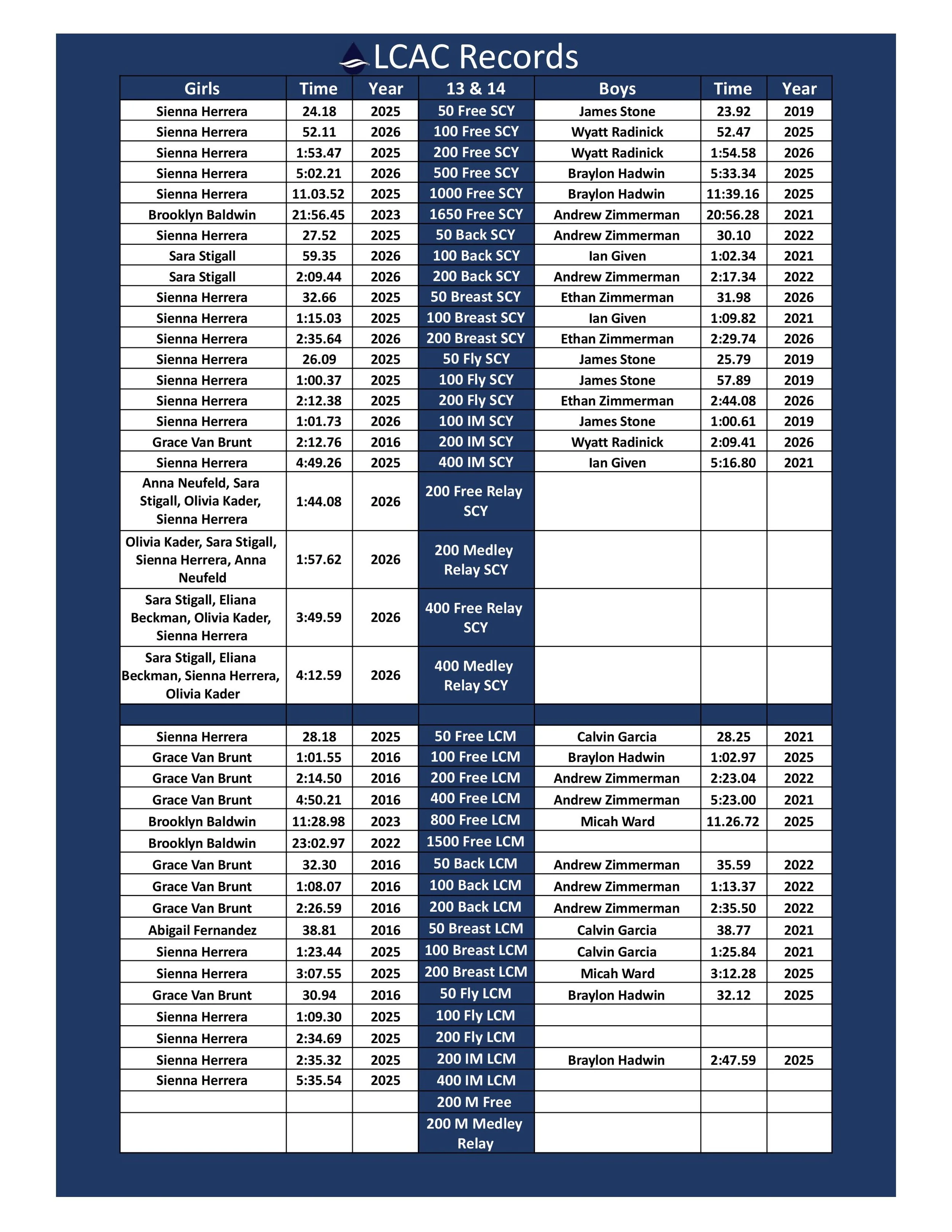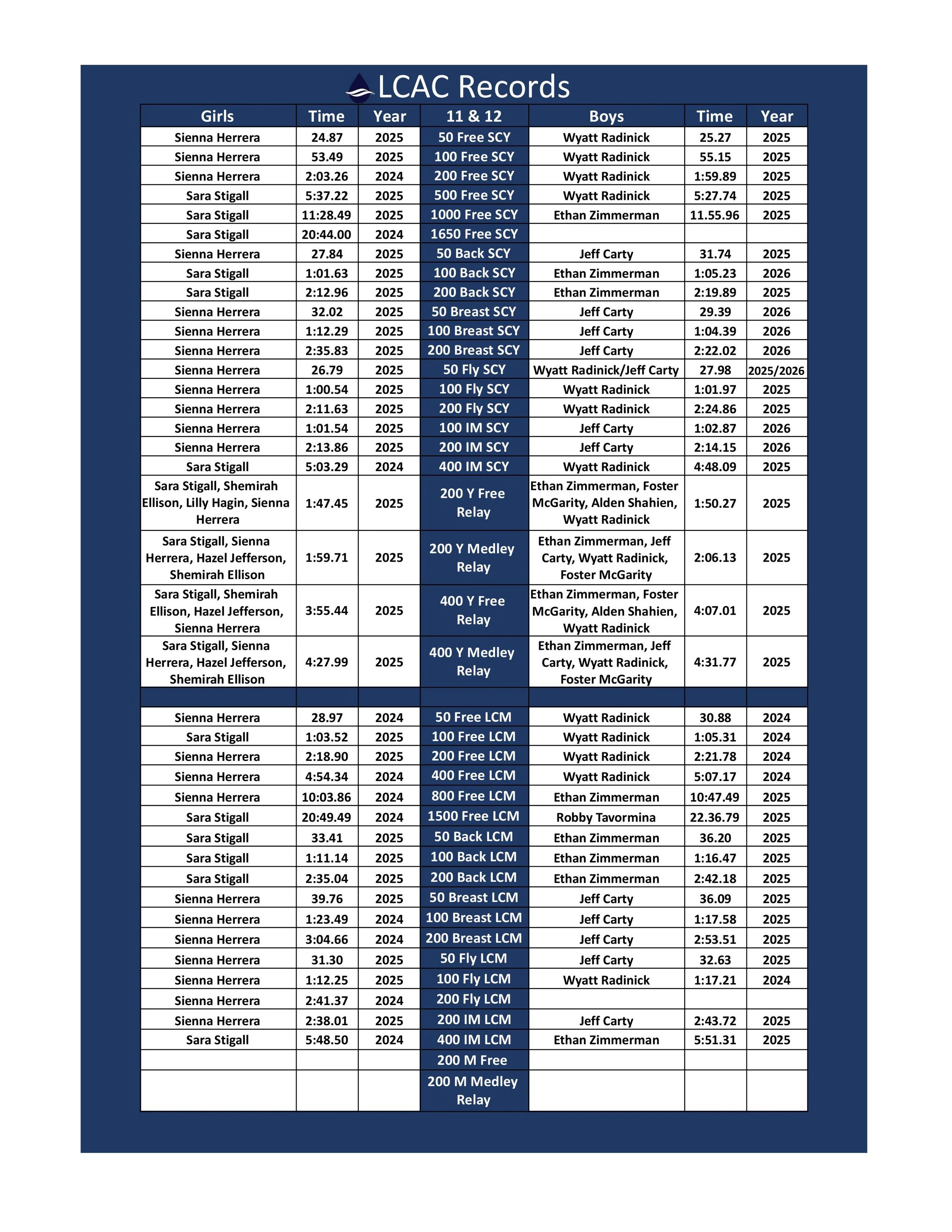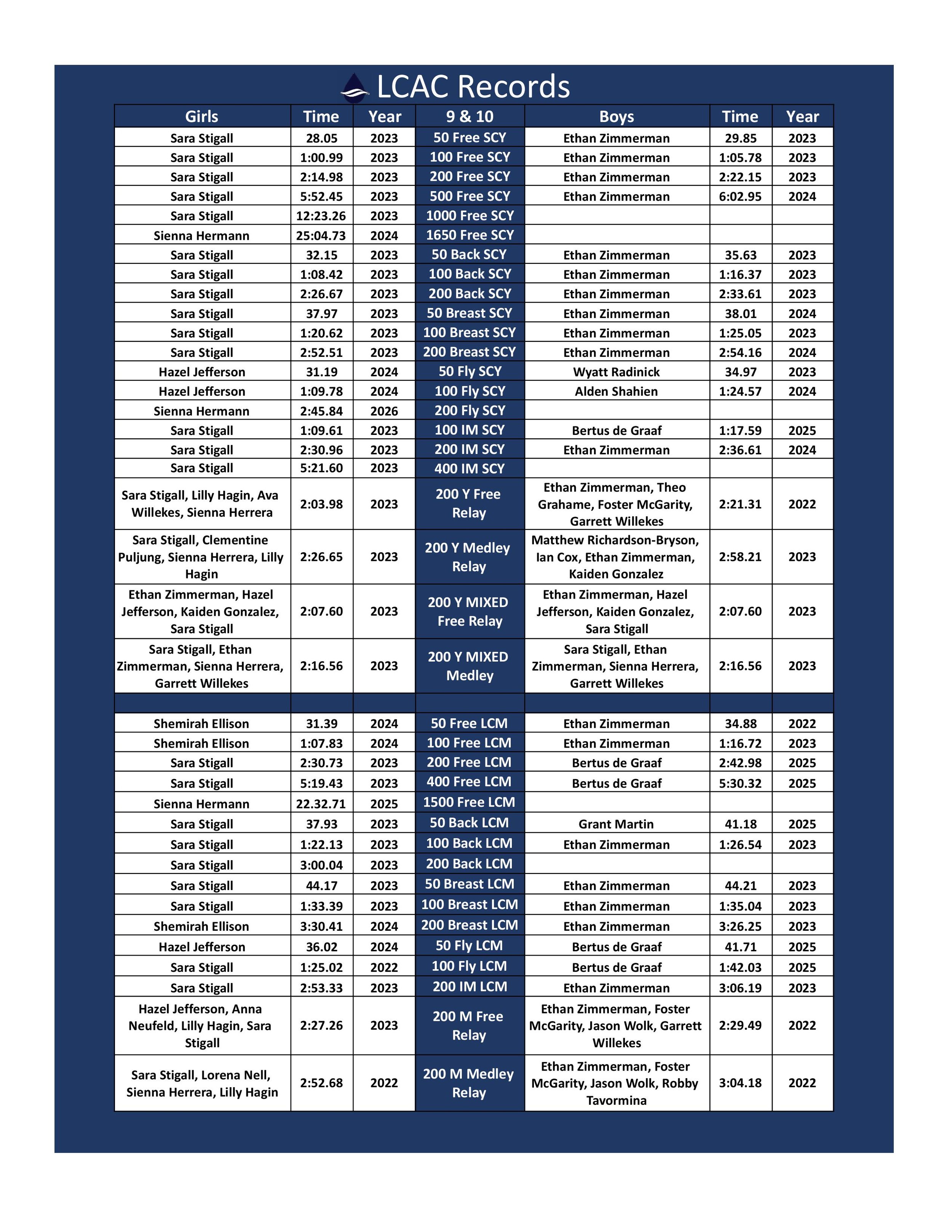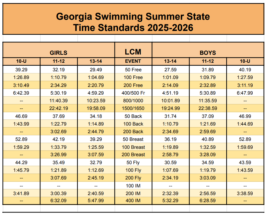 *NEW!! Summer 2026 Age Group State LONG COURSE Qualification Times have been posted! You can find them at the bottom of the team Record Boards! NOTE: Peach State Long Course Times have not been updated yet!